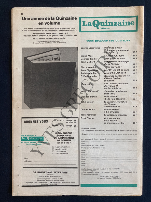 Commandes et contacts par mail. Règlement par chèque, virement bancaire ou Paypal. Frais de port à la charge de l'acheteur. Envoi des livres dès réception du règlement.