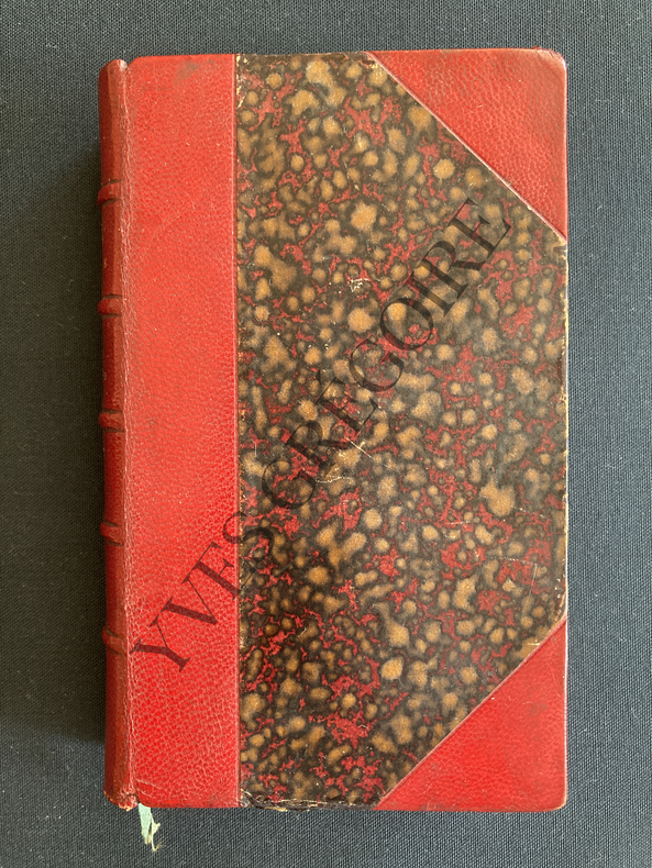 320 PAGES-10,5 CM X 16,5 CM-PORTRAIT EN FRONTISPICE SOUS SERPENTE-DOS ET COINS CUIR BORDEAUX-TITRES DORES-5 FAUX NERFS-PLATS MARBRES-TRANCHE SUPERIEURE DOREE-SIGNET TISSU-(25A)