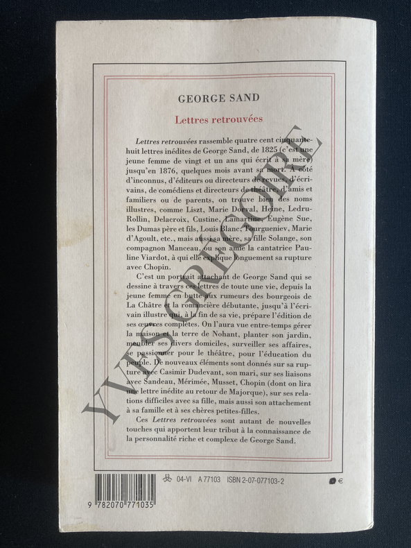 Présentées et annotées par Philip Kolb. Classification Dewey : 846-Lettres, correspondance littéraire