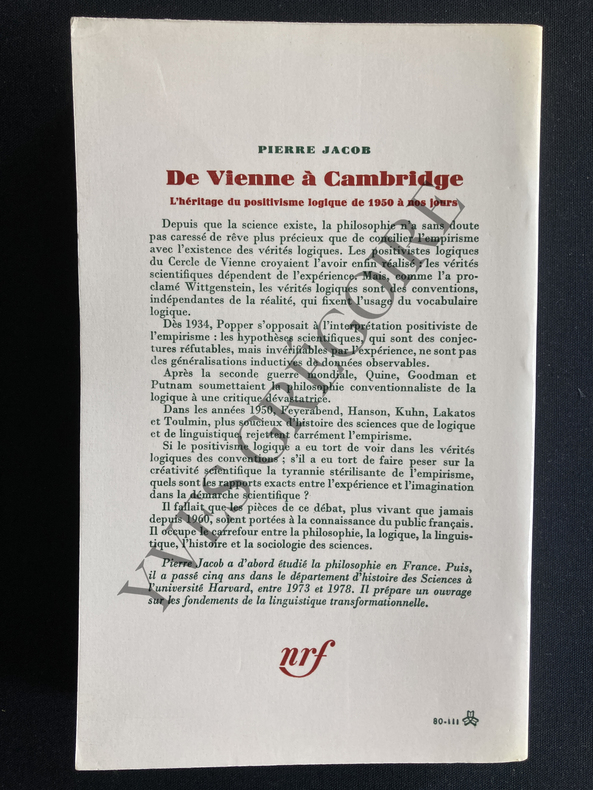 Gallimard. 1980. In-8. Broché. Etat d'usage, Couv. légèrement passée, Dos plié, Intérieur acceptable. 434 pages - coins frottés - couverture jaunie - pliure sur les plats - pellicule transparente qui recouvre la couverture se détache.. . . . Classification Dewey : 100-PHILOSOPHIE ET DISCIPLINES CONNEXES