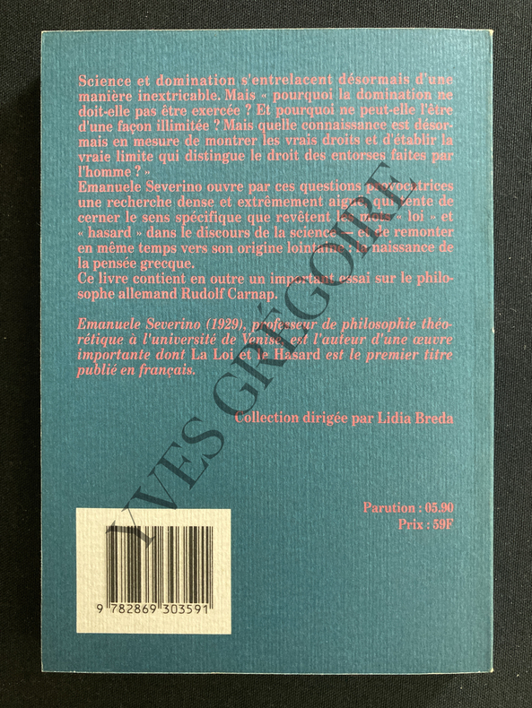 Rivages, "Petite Bibliothèque", 1990, 12 x 17, 191 pages sous couverture imprimée. Traduit de l'italien par Marilène Raiola.