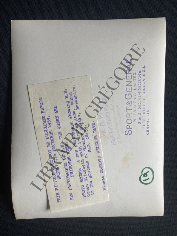 TIRAGE ARGENTIQUE NOIR ET BLANC-15,5 CM X 20,5 CM-AU DOS: LEGENDE EN ANGLAIS SUR PAPIER CONTRECOLLE, CACHET HUMIDE "ADP" AGENCE DIFFUSION PRESSE, CACHET HUMIDE AGENCE SPORT & GENERAL (CP8)