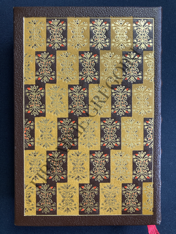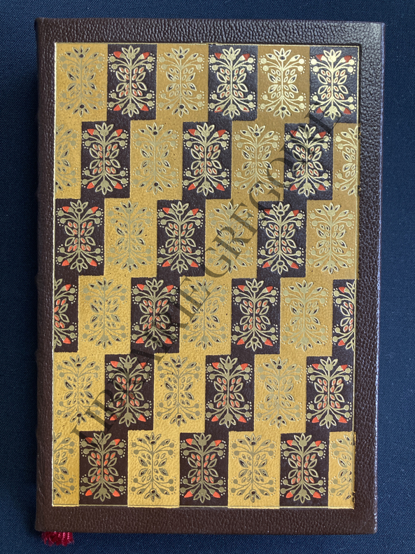 Tres rare dans cette reliure , PARIS, Editions Bernard Grasset, Imprimerie Nationale, Editions Lidis, 1961 format in 4, 7 volumes complets. Les ouvrages sont numérotés n°963, numérotés de 694 à 1493 sur vélin d'Arches pur chiffon filigrané " André Malraux ". Cette édition a été imprimée pour le compte des éditions LIDIS sur les Presses de l'Imprimerie Nationale supervisée par Daniel GIBELIN et Georges ARNOULT.Le tirage des lithographies originales en couleurs hors le texte et in plano sous serpente volante, composées et gravées par Walter SPITZER, a été assuré par les ateliers MOURLOT Frères les titres : LA VOIE ROYALE , L'ESPOIR , L'ILLUSION LYRIQUE , LE MANZANARES, L'ESPOIR, LA CONDITION HUMAINE , LES APPROCHES - PUISSANCES - L'HOMME. ,LE TEMPS DU MEPRIS , LES NOYERS DE L'ALTENBURG , LES NOYERS DE L'ALTENBURG et CAMP DE CHARTRES. SUPERBES RELIURES SIGNEE DE B. ROULLET A PARIS Pleine reliure artistique signée en MAROQUIN bordeaux, dos lisse,avec deux gros nerfs en haut et en bas , tranche supérieure dorée Le premier plat est frappé en son centre d'un caractère chinois au fer doré, lui même détouré par le Pa Kua chinois (figure octogonale formée par huit « trigrammes ») estampé à froid. Une feuille volante explique les symboles utilisées dans la reliure Etat comme neuf , sans decoloration , photos sur demande