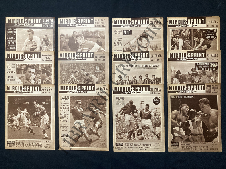 N°500, 9 JANVIER, SKI ALPIN-501, 16 JANVIER, RUGBY-502, 23 JANVIER, PATINAGE ARTISTIQUE-503, 30 JANVIER, SKI ALPIN-504, 6 FEVRIER, FOOTBALL-505, 13 FEVRIER, CYCLO CROSS-506, 20 FEVRIER, BASKET BALL-507, 27 FEVRIER, BOXE-508, 5 MARS, FOOTBALL-509, 12 MARS, BASKET BALL-510, 19 MARS, CYCLISME-511, 26 MARS, FOOTBALL-512, 2 AVRIL, BOXE-513, 9 AVRIL, BOBET-514, 16 AVRIL, RUGBY-515, 23 AVRIL, CYCLISME-516, 30 AVRIL, FOOTBALL-517, 7 MAI, FOOTBALL-518, 14 MAI, JAVELOT, MACQUET-519, 21 MAI, OGC NICE CHAMPION DE FRANCE DE FOOTBALL-520, 28 MAI, SEDAN VAINQUEUR DE LA COUPE-521, 4 JUIN, CYCLISME-522, 11 JUIN, CYCLISME-523, 18 JUIN, BOXE-524, 25 JUIN, CYCLISME-525, 2 JUILLET, CYCLISME-527 A, 9 JUILLET, TOUR DE FRANCE-528 A, 16 JUILLET, TOUR DE FRANCE-529 A, 23 JUILLET, TOUR DE FRANCE-529 B, 25 JUILLET, TOUR DE FRANCE-530, 29 JUILLET, TOUR DE FRANCE