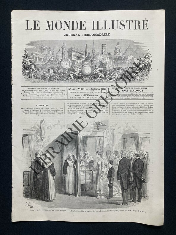 16 PAGES-26,5 CM X 37 CM-VOYAGE DE L'IMPERATRICE EN CORSE, 4 GRAVURES-EXPOSITION UNIVERSELLE DE HOLLANDE, GRAVURE-LE PEINTURE LEYS, GRAVURE-EXPOSITION INTERNATIONALE D'HORTICULTURE A HAMBOURG-DECOUPE EN DERNIERE PAGE (PUBLICITES) SINON BEL EXEMPLAIRE-(SM23)