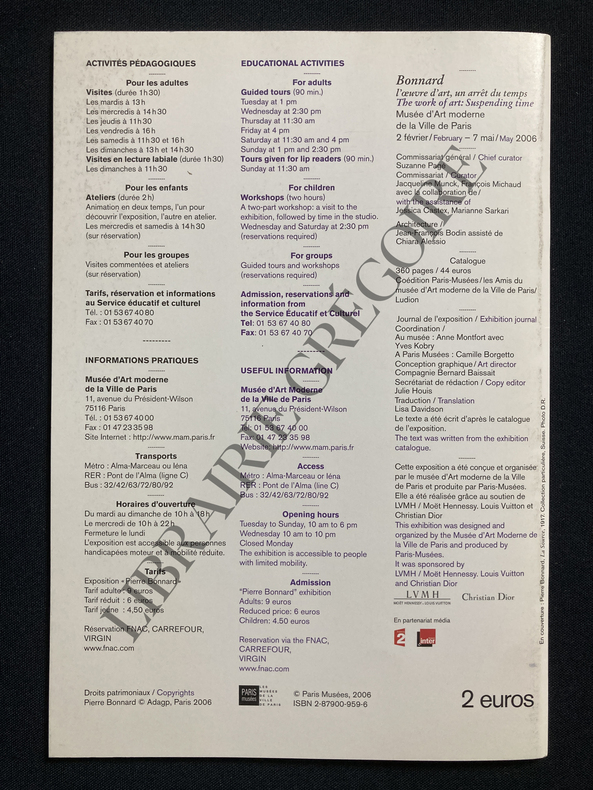 32 PAGES-IN 8-EXPOSITION DU MUSEE D'ART MODERNE DE LA VILLE DE PARIS DU 2 FEVRIER AU 7 MAI 2006-TEXTE EN FRANCAIS ET EN ANGLAIS (8D)