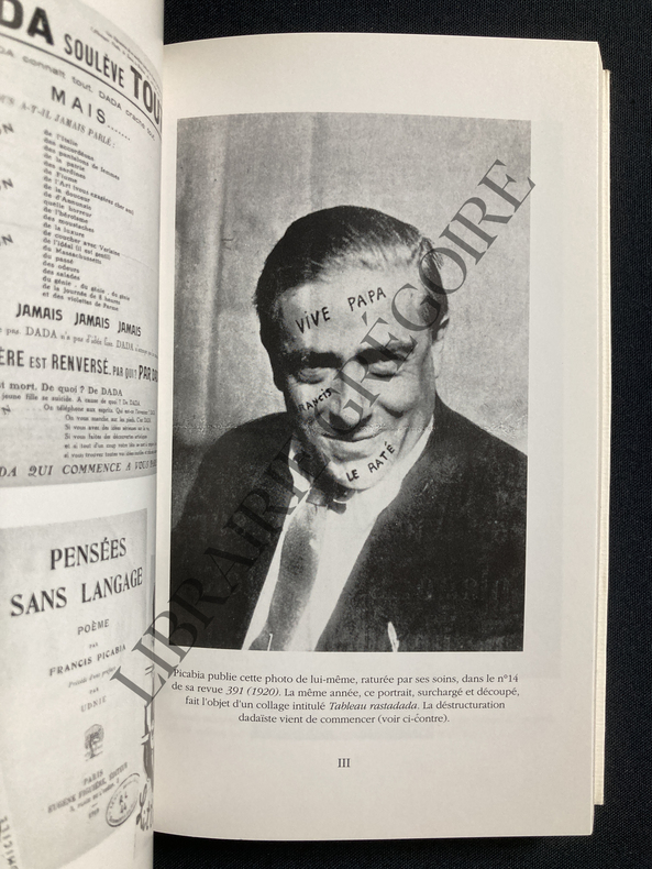 Editions Le Terrain Vague 1960. In-8 4 broché de 159 pages au format 27,5 x 20,5 cm. Couverture à rabats, avec photographie en noir de Francis Picabia. Plats et intérieur assez frais, malgré de petits frottis aux mors et aux coins. Dos carré avec petites traces de lecture. Réédition intégrale de la revue “ 391 “ publiée de 1917 à 1924 par Francis Picabia. Présentation de Michel Sanouillet. Dessins, textes et documents par Pierre Albert-Birot, Maurice Aisen, Guillaume Apollinaire, Walter Conrad Arensberg, Céline Arnauld, Louis Aragon, Hans Arp, Henri Asselin, Georges Auric, Alice Bailly, Suzanne Béguin, Paul-Emile Bibily, André Breton, Gabrielle Buffet-Picabia, Marguerite Buffet, Catawi-Menasse, Serge Charchoune, Jean Cocteau, Jean Crotti, Paul Dermée, Robert Desnos, Marcel Duchamp, Paul Eluard, Funny-Guy [Francis Picabia], Albert Gleizes, Max Goth [Maximilien de Gauthier], Max Jacob, Marie de La Hire, Marie Laurencin, René Magritte, Pierre de Massot, E.L.T. Mesens, Clément Pansaers, Georges de Pawlowski, Pharamousse ( Francis Picabia ), Ezra Pound, Georges Ribemont-Dessaignes, Erik Satie, Rrose Sélavy ( Marcel Duchamp ), Walter Serner, Christian Schad, Philippe Soupault, Guillermo de Torre, Tristan Tzara, Laurence Vail, Edgar Varèse, Clément Vautel, Georges Verly, Henri Jean Vernot, Marius de Zayas. Notice bibliographique. Sommaire des numéros et index des nomùs et personnes cités. Edition originale collective. Rare.