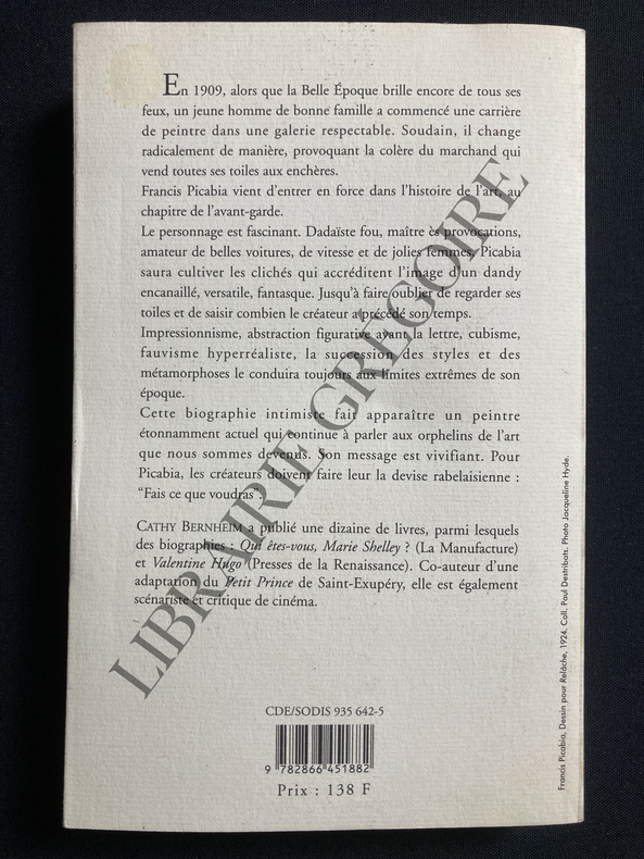 Catalogue de l'exposition organisée du 17 au 31 mars. Préface de L. Roger-Milès. Montées hors texte sur onglet, 6 reproductions. Liste des 34 oeuvres exposées .Bel exemplaire relié: bradel demi-box vert olive, plats de papier à décors vert et ocre, lettre jaune au dos lisse, ouvertures conservées. >>> Le 27 janvier 1909, Francis Picabia épouse Gabrielle Buffet. Peu après, le couple séjourne à Saint-Tropez où le peintre exécute une série de tableaux néo-impressionnistes, qu'il exposera en mars à la galerie Georges Petit. Quelques jours avant le vernissage, Picabia rompt avec la galerie Haussmann qui met en vente aux enchères son stock à l'hôtel Drouot. Cette dispersion et l'exposition chez Georges Petit marque une rupture et clôt sa carrière de peintre de salon à succès. Rare catalogue. Très bon 0