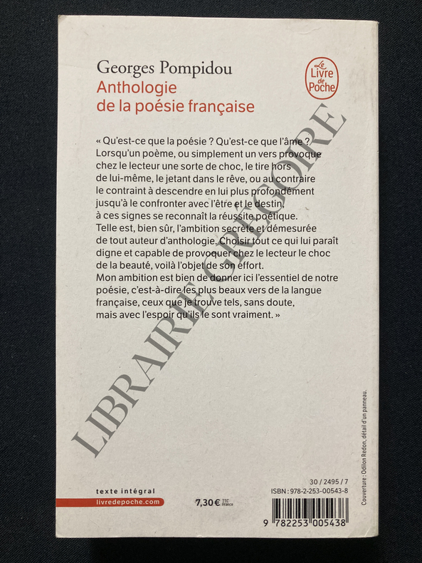 Georges Pompidou. Anthologie de la Poesie francaise. In English /Georges Pompidou. Anthologie de la Poesie francaise. Paris 1970, 540 p. We have thousands of titles and often several copies of each title may be available. Please feel free to contact us for a detailed description of the copies available. SKUalbd7a39e86966e9a80.