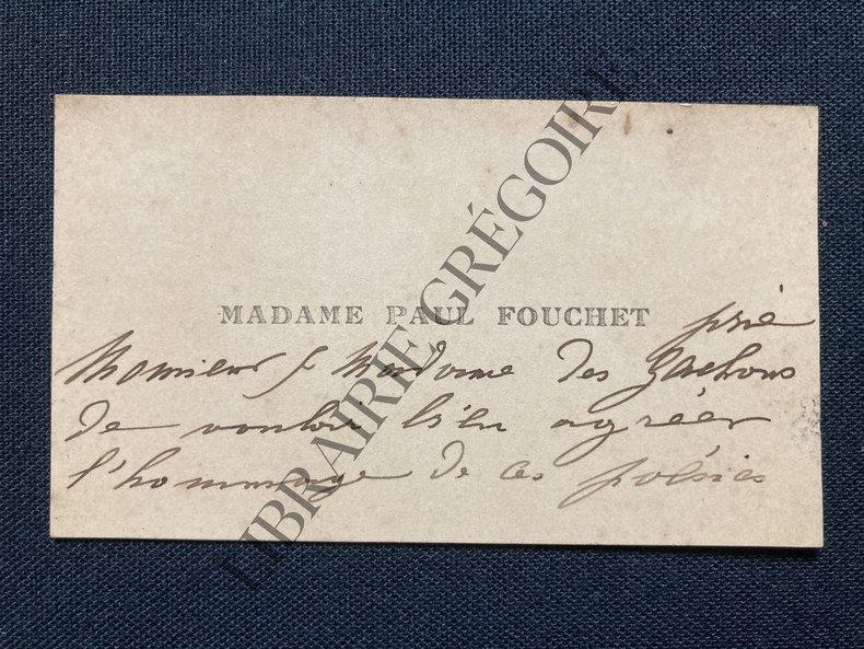 POEMES-116 PAGES-12,5 CM X 18,5 CM-CARTE DE VISITE (9 CM X 5 CM) AU NOM DE MADAME PAUL FOUCHET AVEC QUELQUES LIGNES "PRIE MONSIEUR ET MADAME DES GACHONS DE VOULOIR BIEN AGREER L'HOMMAGE DE CES POESIES AUXQUELLES ILS ONT MONTRE UN AIMABLE INTERET" (JDG5)