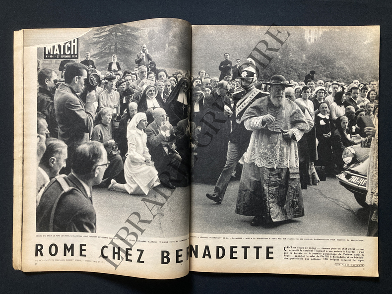 FORMAT 26,5 CM X 35 CM-100 PAGES-DECHIRURES EN COIN SUPERIEUR DROIT DES PAGES 25 A 30-VISITE DU CARDINAL EUGENE TISSERANT A LOURDES, 6P-VISITE DE CHARLES DE GAULLE A RENNES, 6P-LUIS MIGUEL DOMINGUIN LE TORERO NOIR, 11P-ERIC DE BISSCHOP: SON DERNIER GRAND VOYAGE, 7P-RENCONTRE ENTRE DE GAULLE ET ADENAUER, 4P-SIMONE BICHERON EPOUSE CURD JURGENS, 4P
