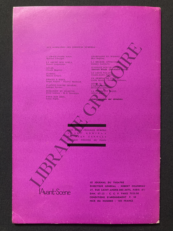 AU BUREAU DE LA REVUE. 1958. In-8. Broché. Bon état, Couv. convenable, Dos satisfaisant, Intérieur frais. 52 pages augmentées de quelques photos en noir et blanc dans et hors texte - texte sur 2 colonnes. . . . Classification Dewey : 792-Théâtre