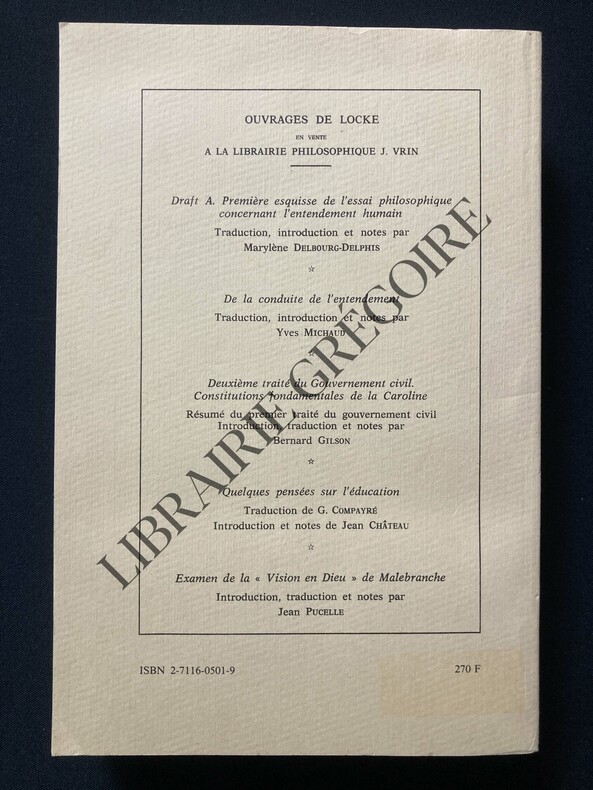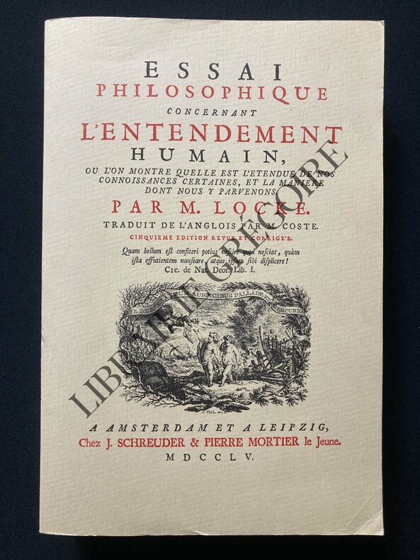 EDITION ORIGINALE DE LA TRADUCTION FRANCAISE, sans le portrait en frontispice. C'est Jean Le Clerc qui introduisit Coste auprès de Locke. Le Clerc avait déjà traduit Locke et s'était fait l'écho du travail du philosophe anglais dans sa Bibliothèque universelle et historique ; il fut le premier à en faire connaître les idées en France. Coste présenta sa traduction de "Some Thoughts concerning Education" (De l'éducation des enfants, 1695) à Locke qui en fut satisfait et en 1697 il invita Coste à le rejoindre pour superviser sa traduction de l'essai sur l'entendement humain. Coste resta auprès de Locke jusqu'à la mort de celui-ci en 1704. (Delphine SOULARD. "L'uvre des premiers traducteurs français de John Locke : Jean Le Clerc, Pierre Coste et David Mazel". Revue XVIIe siècle, 2004, N°253, pp. 739-762).