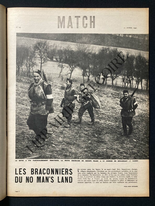 MATCH. 11 avril 1940. In-Folio. Broché. Bon état, Couv. convenable, Dos satisfaisant, Intérieur frais. environ 46 pages augmentées de nombreuses photos en noir et blanc et en couleurs dans et hors texte - 1er plat illustré d'une photo en noir et blanc. . . . Classification Dewey : 70.49-Presse illustrée, magazines, revues