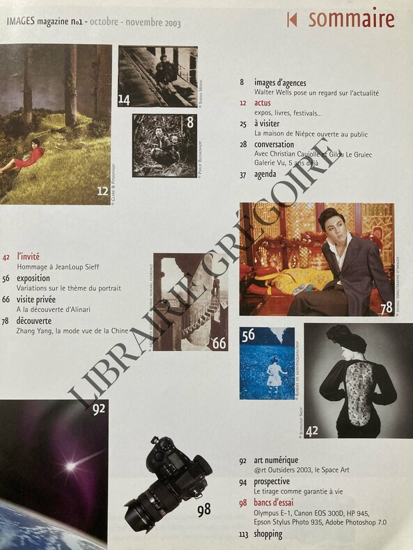 FORMAT 23 CM X 30 CM-122 PAGES-GROUPE NSMD MECENE DE L'IMAGE, 3P-LA MAISON DE NICEPHORE NIEPCE OUVERTE AU PUBLIC, 2P-HOMMAGE A JEANLOUP SIEFF, 14P-VARIATIONS SUR LE THEME DU PORTRAIT, 10P-A LA DECOUVERTE D'ALINARI, 10P-ZHANG YANG, LA MODE VUE DE LA CHINE, 8P-(14A)