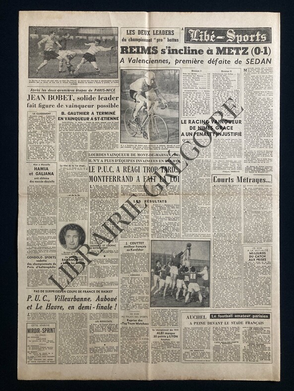 6 PAGES-43 CM X 60 CM-EN UNE: A VOUS, SENAT!, ACCORDS DE PARIS-P2: EXORCISONS LES "DIABOLIQUES", QUART DE PAGE-LE FILS DE CAROLINE CHERIE, PHOTO (JEAN-CLAUDE PASCAL-MAGALI NOEL)-LA STRADA, DESSIN JULIETTE MASINA-P4: ACCUSE "D'ABANDON DE DOMICILE CONJUGAL" FAUSTO COPPI N'A PLUS DE SUPPORTERS DEVANT LE TRIBUNAL D'ALEXANDRIE, 2 PHOTOS