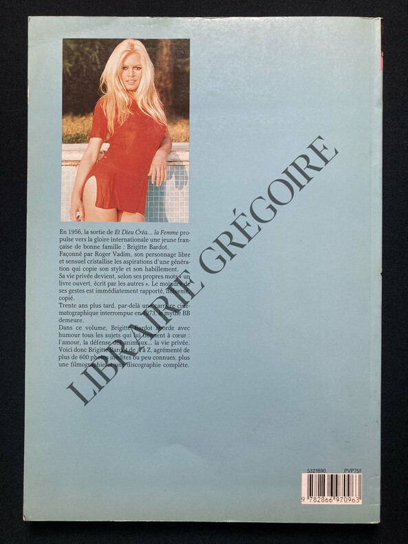Paris, Editions Bernard Grasset 1960. In-8 broché, carré, non paginé, d'environ 100 pages, au format 21 x 18 cm. Couverture illustrée d'une photo de Brigitte Bardot. Dos carré muet. Plats et intérieur frais. Tirage sur couché. Recueil d'une foultitude de photographies en noir et blanc, in et hors texte de Brigitte Bardot, préfacées et légendées par François Nourissier. Filmographie en fin d'ouvrage. Edition originale en superbe état général. Précieux exemplaire enrichi d'une carte postale de Brigitte Bardot, photographiée par Sam Levin, avec une magnifique dédicace, de Brigitte Bardot, destinée à des proches.