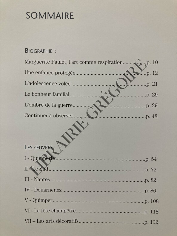 144 PAGES-IN 4-PREFACE JEAN-MICHEL LE BOULANGER-BIOGRAPHIE: MARGUERITE PAULET, L'ART COMME RESPIRATION UNE ENFANCE PROTEGEE L'ADOLESCENCE VOLEE LE BONHEUR FAMILIAL L'OMBRE DE LA GUERRE CONTINUER A OBSERVER-LES OEUVRES: I QUIMPERLE II LE SUD III NANTES IV DOUARNENEZ V QUIMPER VI LA FETE CHAMPETRE VII LES ARTS DECORATIFS-JAQUETTE-LEGER ACCROC EN COIFFE DE TETE DE JAQUETTE SINON ETAT NEUF-(E1024)
