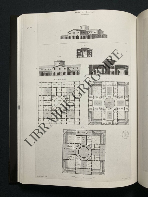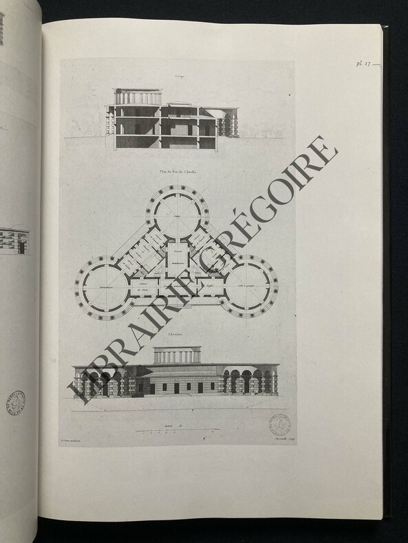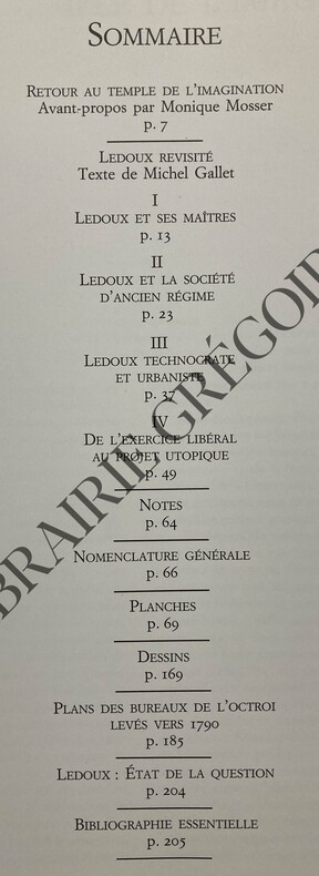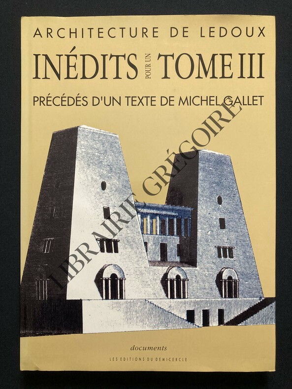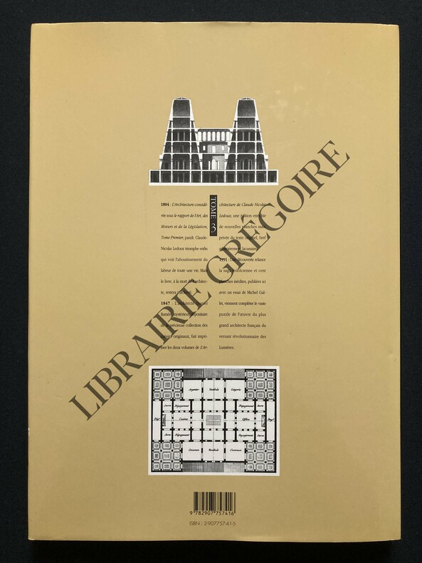 Paris, Les Editions du Demi-Cercle, 1991. In-4 relié (35,5 x 25,3 cm), jaquette imprimée, 205 pages, richement illustré de dessins, plans, 100 nouvelles planches de Claude-Nicolas Ledoux.- 1730g. - Etat neuf.