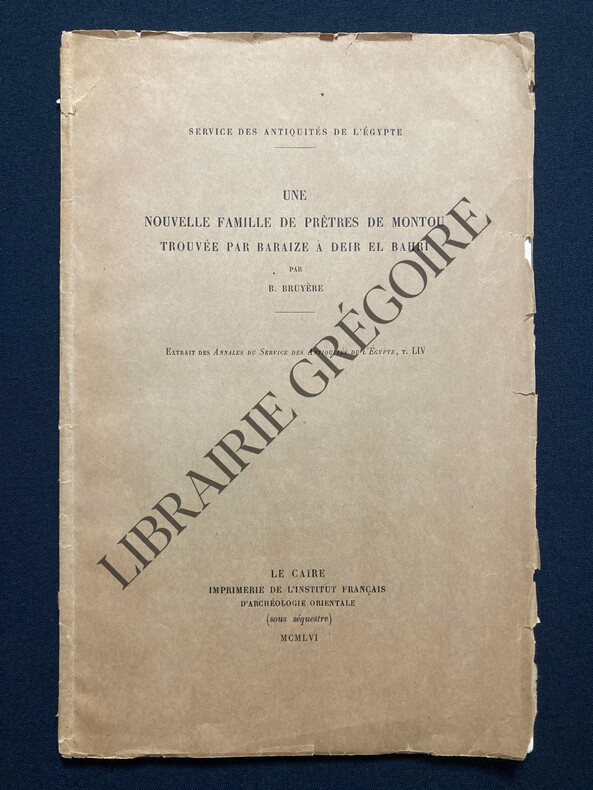 SERVICE DES ANTIQUITES DE L'EGYPTE-EXTRAIT DES ANNALES DU SERVICE DES ANTIQUITES DE L'EGYPTE-T LIV-42 PAGES-18,5 CM X 27,8 CM-PLANCHES PHOTOGRAPHIQUES EN FIN D'OUVRAGE-(200EF)