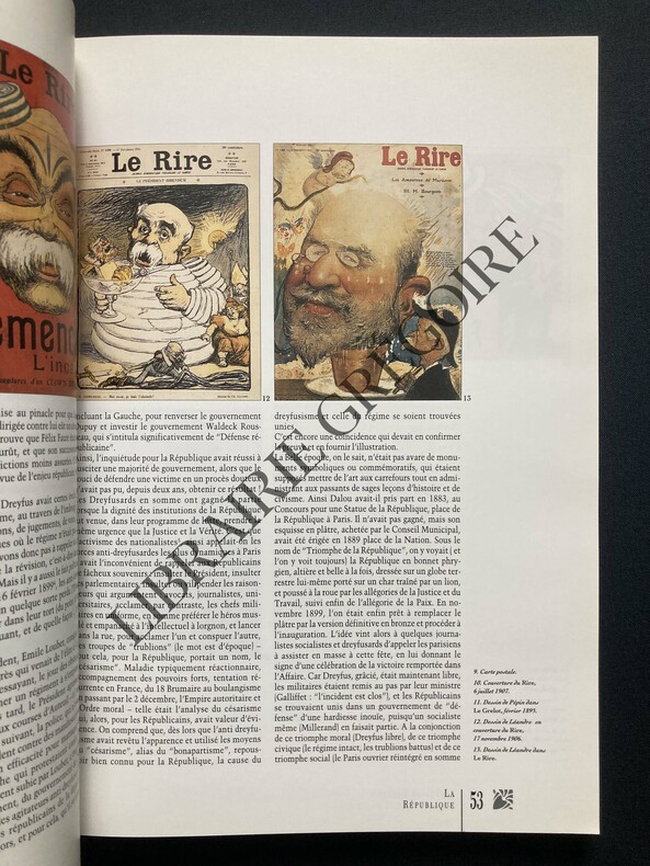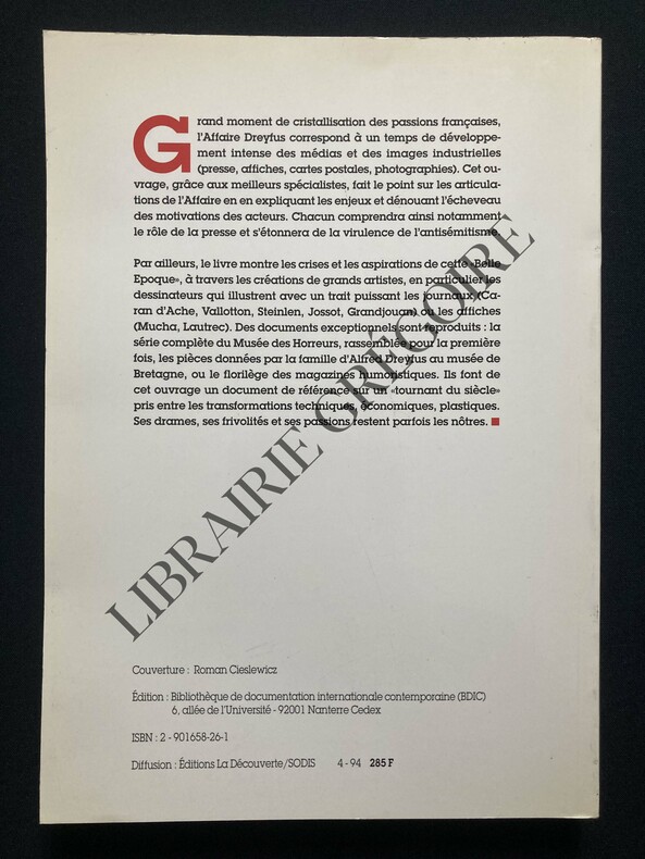 Cet ouvrage, très bien documenté et illustré, permet de mieux comprendre le rôle et la virulence de la Presse dans l'Affaire Dreyfus, les enjeux politiques et sociologiques, tout en soulignant le curieux mélange de drame, de frivolité, de passions, caractéristiques de la "Belle Epoque". (3459)