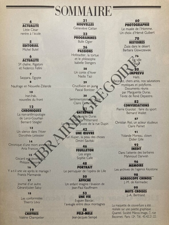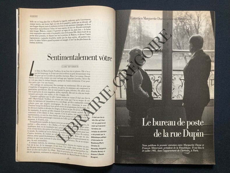 ENTRETIEN MARGUERITE DURAS-FRANCOIS MITTERRAND, 11 PAGES-YURI KUPER: LA PEAU DES CHOSES, PAR DMITRI SAVITSKI, 3 PAGES, 3 PHOTOS-LE PELE-MELE DE JEAN-JACQUES SEMPE, 2 PAGES-YOLANDE MOREAU, CLOWN, THEATRE DU TOURTOUR, 1P, PHOTO