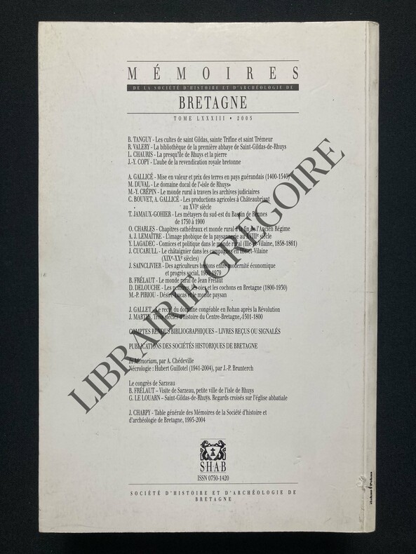 Société d'Histoire et d'Archéologie de Bretagne Broché 2005 In-8 (16 x 24 cm), broché, 751 pages, Tome LXXXIII des Mémoires de la Société d'Histoire et d'Archéologie de Bretagne (année 2005) ; très bon état. Livraison a domicile (La Poste) ou en Mondial Relay sur simple demande.