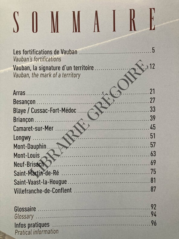 TEXTE FRANCAIS ET ANGLAIS-96 PAGES-31 CM X 25 CM-OBLONG-LES FORTIFICATIONS DE VAUBAN-LA SIGNATURE D'UN TERRITOIRE-LES DOUZE SITES MAJEURS-GLOSSAIRE DE LA FORTIFICATION CLASSIQUE-JAQUETTE-(500K)