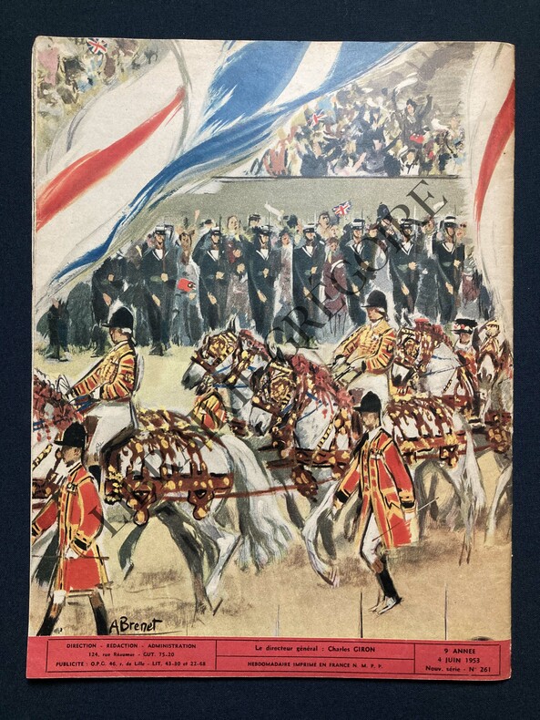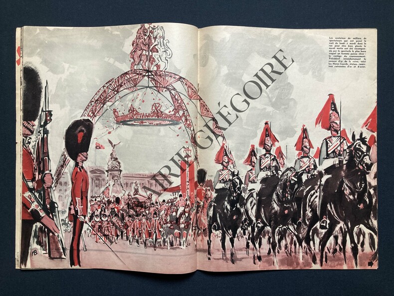 40 PAGES-26,5 CM X 35 CM-EN COUVERTURES: DESSIN DE BRENET, CORTEGE SACRE ELIZABETH II-COURONNEMENT ELIZABETH II, 22 PAGES, DESSINS PLEINE PAGE ALBERT BRENET