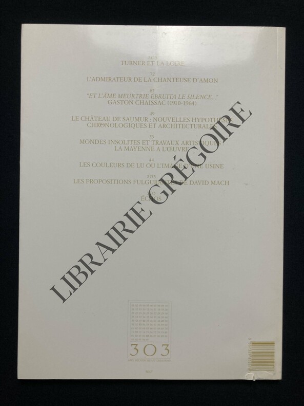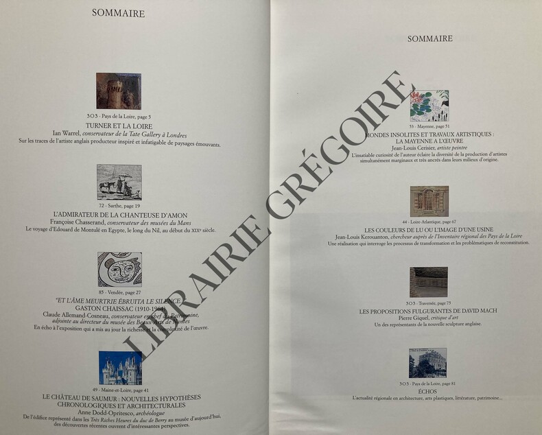 96 PAGES-22,5 CM X 30 CM-EN COUVERTURE COLLAGE DE GASTON CHAISSAC-TURNER ET LA LOIRE, PAR IAN WARREL, 14 PAGES-L'ADMIRATEUR DE LA CHANTEUSE D'AMON, PAR FRANCOISE CHASSERAND, 8 PAGES-"ET L'AME MEURTRIE EBRUITA LE SILENCE." GASTON CHAISSAC (1910-1964), PAR CLAUDE ALLEMAND-COSNEAU, 14 PAGES-LE CHATEAU DE SAUMUR: NOUVELLES HYPOTHESES CHRONOLOGIQUES ET ARCHITECTURALES, PAR ANNE DODD-OPRITESCO, 10 PAGES-MONDES INSOLITES ET TRAVAUX ARTISTIQUES: LA MAYENNE A L'OEUVRE, PAR JEAN-LOUIS CERISIER, 16 PAGES-LES COULEURS DE LU OU L'IMAGE D'UNE USINE, PAR JEAN-LOUIS KEROUANTON, 9 PAGES-LES PROPOSITIONS FULGURANTES DE DAVID MACH, PAR PIERRE GIQUEL, 5 PAGES-(2A)