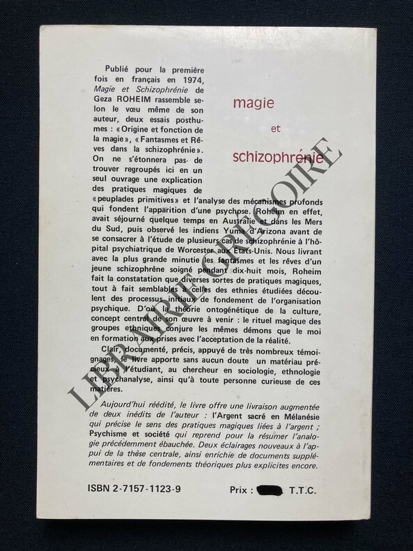 326 PAGES-13 CM X 19 CM-TRADUIT DE L'AMERICAIN PAR EDDY TREVES-PREFACE DE ROGER DADOUN-DEUX TEXTES INEDITS: L'ARGENT SACRE EN MELANESIE, PSYCHISME ET SOCIETE, TRADUIT DU HONGROIS PAR GEORGES KASSAI-1 LEGER PLI DE LECTURE EN DOS SINON ETAT NEUF-(26E)