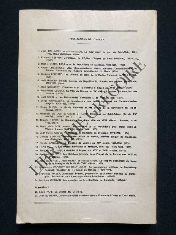 UNIVERSITE DE HAUTE-BRETAGNE RENNES II INSTITUT ARMORICAIN DE RECHERCHES ECONOMIQUES ET HUMAINES-492 PAGES-IN 8-(26F)