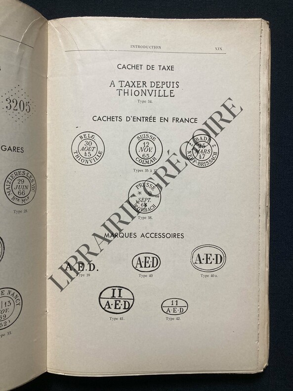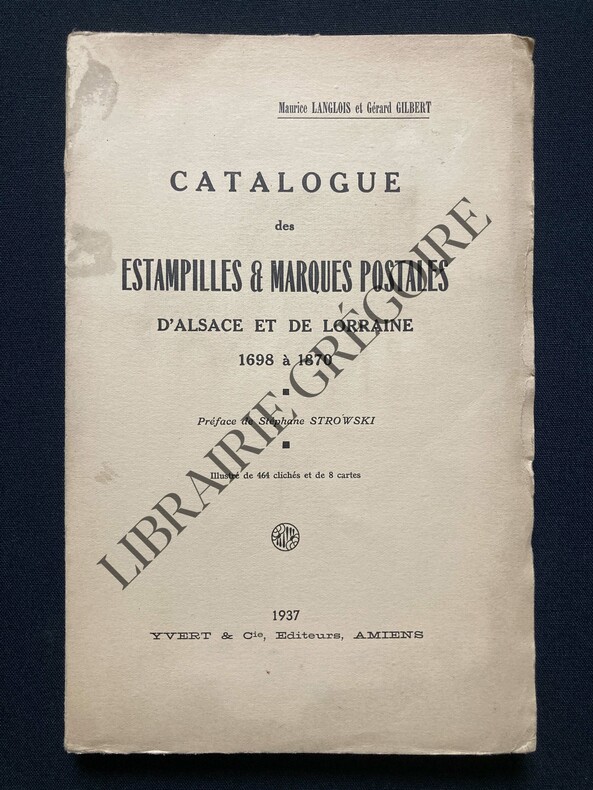 Catalogue, avec valeur marchande, de 1937. Préface de Stéphane Strowski. Illustré de 464 clichés et de 8 cartes. Pour les collectionneurs ou les spécialistes des marques postales. Ouvrage en excellent état, non massicoté.