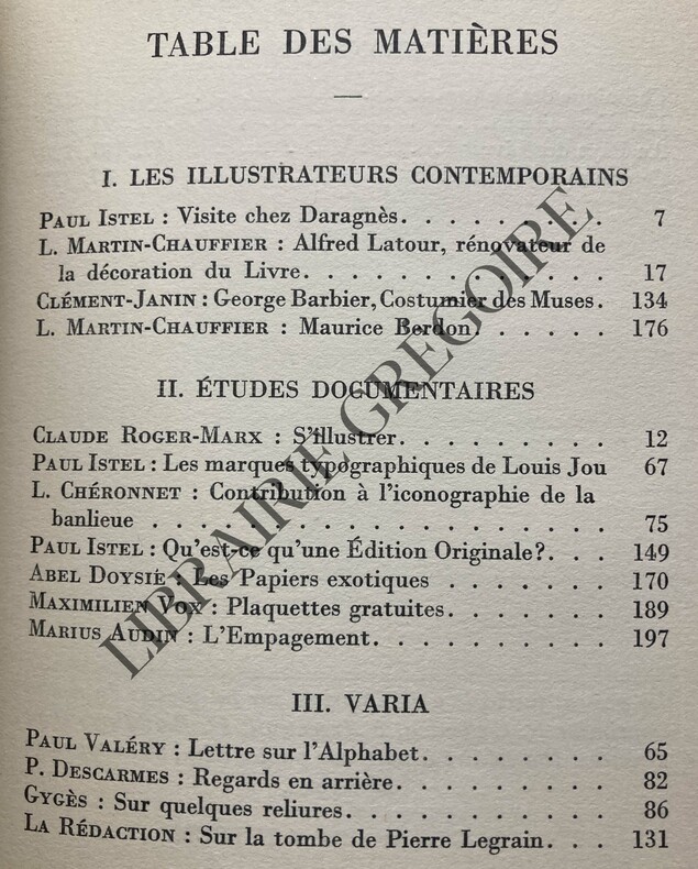 14,5 CM X 19,5 CM-238 PAGES ET 48 PAGES D'ANNONCES-SUR LA TOMBE DE PIERRE LEGRAIN, 3 PAGES-GEORGE BARBIER COSTUMIER DES MUSES, 15 PAGES-QU'EST-CE QU'UNE EDITION ORIGINALE?, 21 PAGES PAR PAUL ISTEL-LES PAPIERS EXOTIQUES, 6 PAGES-UN CREATEUR DE PERSONNAGES: MAURICE BERDON, 13 PAGES, ALFRED LATOUR-PLAQUETTES GRATUITES, 8 PAGES PAR MAXIMILIEN VOX-L'EMPAGEMENT, 13 PAGES-LES EXPOSITIONS LE LIVRE AU SALON D'AUTOMNE, 4 PAGES-(21D)