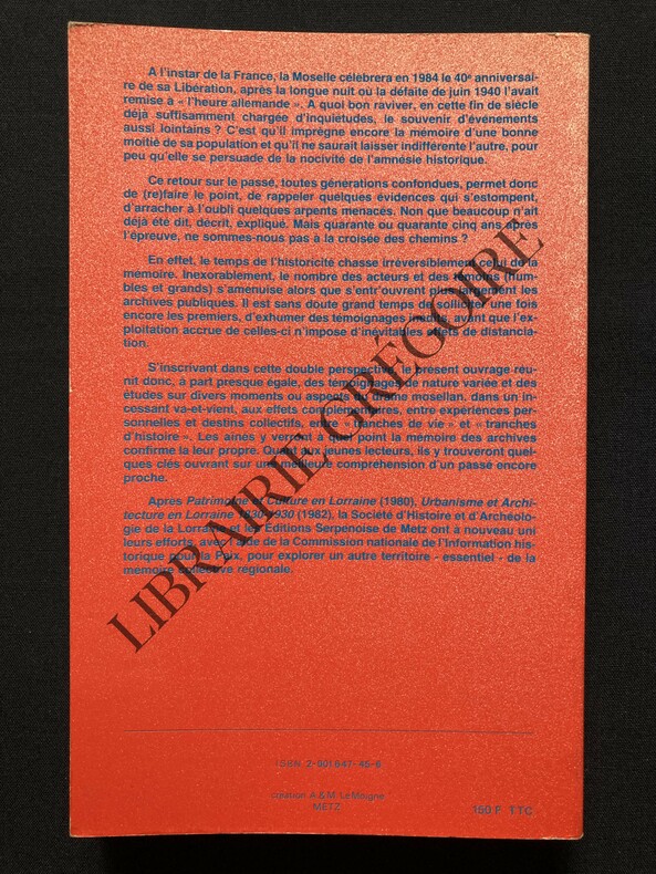 EDITIONS SERPENOISE-SOCIETE D'HISTOIRE ET D'ARCHEOLOGIE DE LA LORRAINE COUVERTURE SOUPLE ETAT COMME NEUF