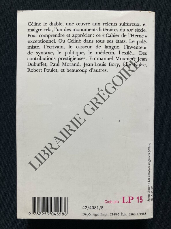 Édition originale de ce second Cahier de l'Herne consacré à Céline. Avec un cahier photographique en fin de volume Exemplaire en parfaite condition. . ........ RARE ................. en trés bon état (very good condition). en trés bon état