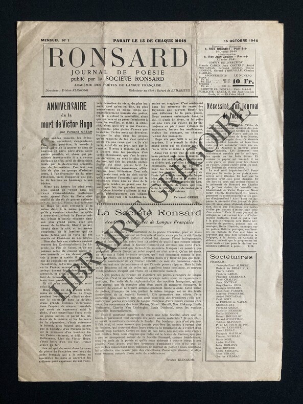 MENSUEL-8 PAGES-ANNIVERSAIRE DE LA MORT DE VICTOR HUGO, PAR FERNAND GREGH-LA SOCIETE RONSARD, PAR TRISTAN KLINGSOR-JACQUES RICHEPIN, DECES-EN DEJEUNANT AVEC FRANCIS CARCO, PAR DANIELLE HEMMERT, 1P, POEME "SUR-IMPRESSION", INEDIT-SUR LA POESIE BELGE, PAR THOMAS BRAUN-LA POESIE PHILIPPE CHABANEIX JOE BOUSQUET JEAN POURTAL DE LADEVEZE-(PJ1)