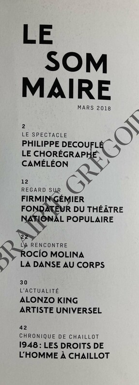 52 PAGES-28,5 CM X 42 CM-PHILIPPE DECOUFLE LE CHOREGRAPHE CAMELEON-REGARD SUR FIRMIN GEMIER FONDATEUR DU THEATRE NATIONAL POPULAIRE-ROCIO MOLINA LA DANSE AU CORPS-ALONZO KING ARTISTE UNIVERSEL-1948: LES DROITS DE L'HOMME A CHAILLOT-(ETACA)