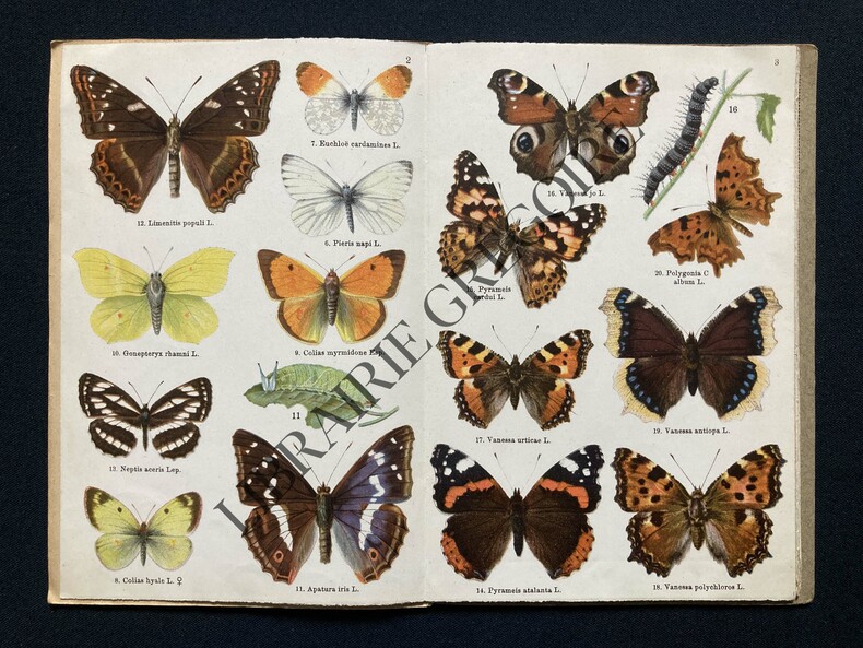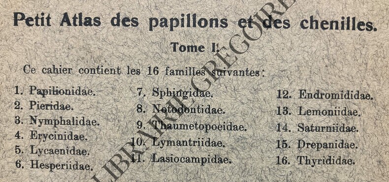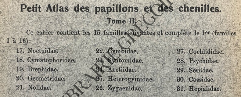Paris, Boubée et Cie, Comptoir central d'histoire naturelle, sans date (vers 1930-1940), 2 fascicules 13x19cm, brochés, couvertures illustrées, de 12 pages + 12 planches en couleurs pliées en accordéon pour le tome 1 ; 23 pages + 13 planches en couleurs pliées en accordéon pour le tome 2. Nom d'un ancien propriétaire inscrit discrètement sur la couverture, noms français des papillons rajoutés au crayon de papier sur les planches. Bon état général.