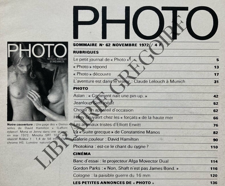 140 PAGES-FORMAT IN 4-EN COUVERTURE: LES NOUVELLES DEMOISELLES DE DAVID HAMILTON-LELOUCH:CE QUE PERSONNE N'A VU A MUNICH-UN MAGICIEN NOMME ASLAN-LES NOUVELLES "DEMOISELLES" DE DAVID HAMILTON-26 PAGES MANQUANTES SANS CONSEQUENCES SUR LES ARTICLES CITES-(E24)