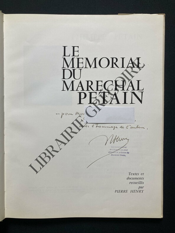 Le Monde et la Vie. 1964. In-4. Relié. Bon état, Couv. convenable, Dos satisfaisant, Intérieur frais. 108 pages. Illustré de nombreuses photos en noir et blanc dans et hors texte. Envoi manuscrit et tampon de l'auteur en page de titre. Jaquette légèrement passée.. Avec Jaquette. . . Classification Dewey : 940.533-Pétain