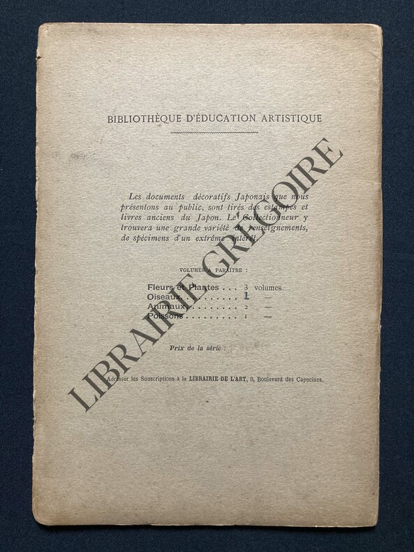 BIBLIOTHEQUE D'EDUCATION ARTISTIQUE-TROISIEME SERIE-TIRES DE LA COLLECTION C. GILLOT-40 PAGES-17,5 CM X 25,5 CM-LEGER MANQUE EN MARGE SUP DU PREMIER PLAT-(17C)