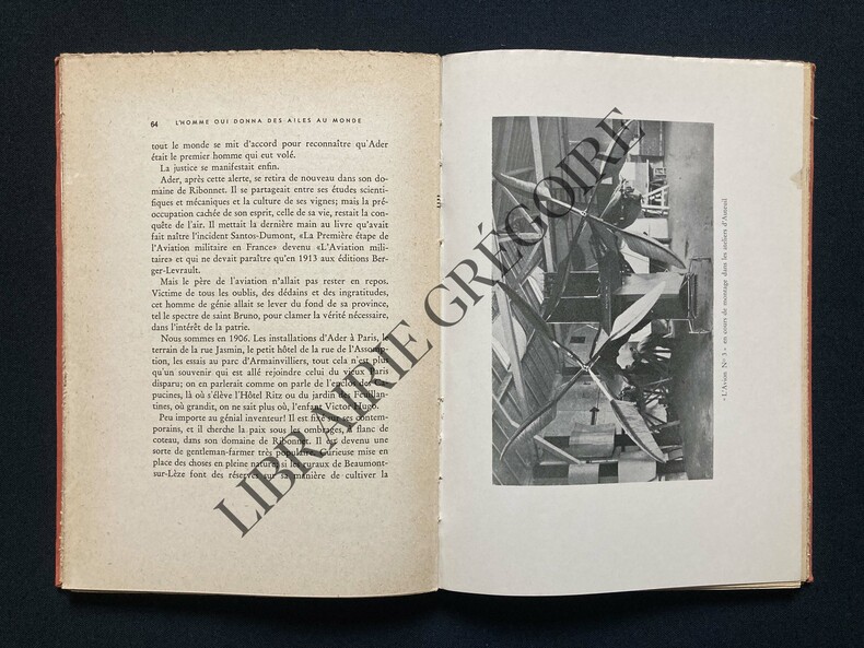 Plon, 1947, gr. in-8°, 119 pp, 14 gravures hors texte dont un portrait de Clément Ader en frontispice, cartonné, dos toilé rouge, très bon état