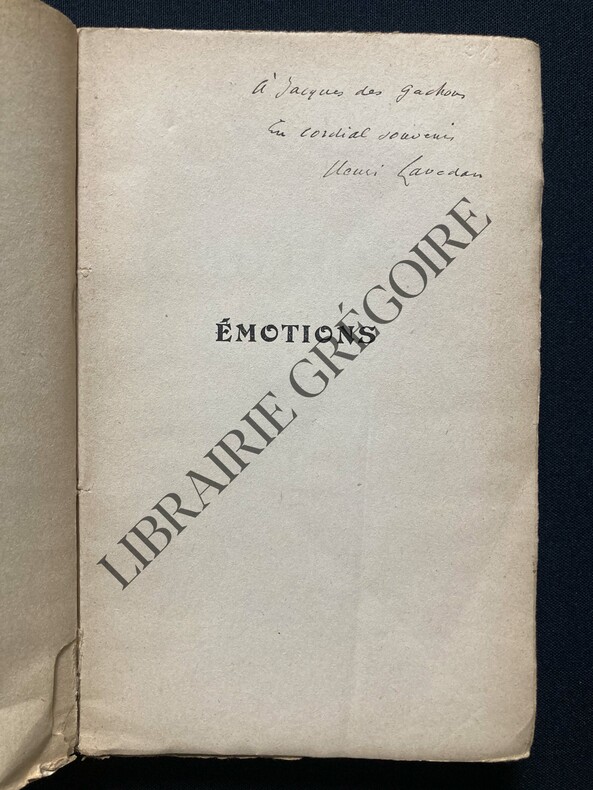 First printing, presentation-copy, of Sartre's highly important early philosophical work, which is recognized as the best introduction to his ""L'Étre et le Néant"" (1943). The work was only printed as it is here, as no. 838 of Cavaillè's ""Actualités scientifiques et industrielles"", and only appeared in a new (not revised) edition in 1960. The large presentation-inscription reads as thus : "" A Olivier Briot/ en la remerciant de "" Les lignes "" qui j'ai/ beaucoup aimé/ JP Sartre "".""L'Esquisse d'une théorie des émotions "" ("" Sketch for a Theory of the Emotions""), although now considered one of Sartre's most important works, was originally written as the first part and introduction to a greater work on psychological phenomenology that was supposed to be entitled ""La Psyché"". The great psychological project was abandoned due to Sartre's eagerness to finish ""Le Mur"". ""L'Esquisse"" thus remains the only part of the work ever published, and perhaps exactly because of its introductory character, it has come to have the effect on modern philosophical thought that it has. Due to being at the same time accessible and rigourous, the work is considered the best introduction to Sartre's fundamental philosophical ideas, an almost indispensible presentation of and introduction to ""L'Étre et le Néant"", which appeared four years later. ""L'Esquisse d'une théorie des émotions "" is a phenomenological essay on emotion, in which Sartre ettempts to present a phenomenological psychology, treating emotion as a "" phenomenon "" and placing it within the realm of signification. The primary presentation of his own phenomenological analysis is essantial to all his later philosophy.""Although written fairly early in his career, in 1939, Sketch for a Theory of the Emotions is considered to be one of Jean-Paul Sartre's most important pieces of writing. It not only anticipates but argues many of the ideas to be found in his famous Being and Nothingness. By subjecting the emotion theories of his day to critical analysis, Sartre opened up the world of psychology to new and creative ways of interpreting feelings. Emotions are intentional and strategic ways of coping with difficult situations. We choose to utilize them, we control them, and not the other way around, as has been posited elsewhere. Emotions are not fixed"" they have no essence and indeed are subject to rapid fluctuations and about-turns. For its witty approach alone, Sartre's Sketch for a Theory of the Emotions can be enjoyed at length. It is a dazzling journey to one of the more intriguing theories of our time."" (Sketch for a Theory of the Emotions, 2nd Edition, By Jean-Paul Sartre, Published October 12th 2001 by Routledge - 80 pages, Series: Routledge Classics)