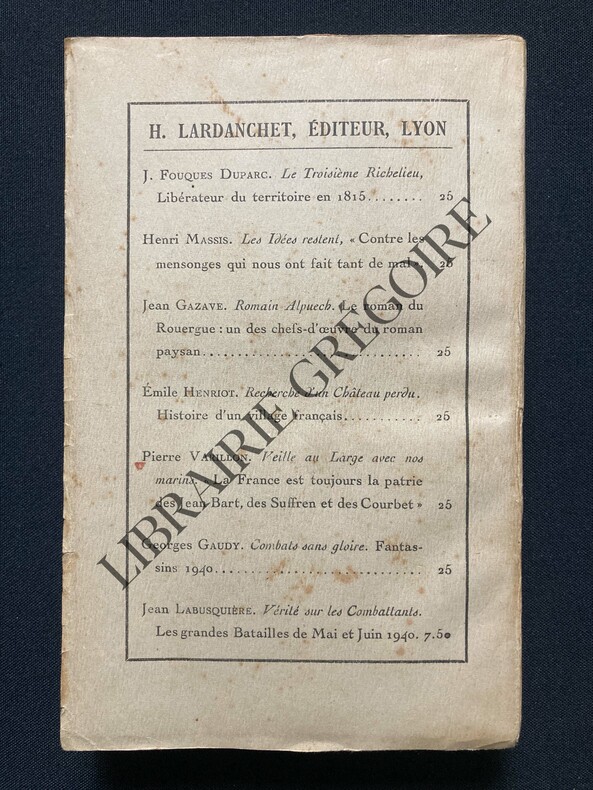 Lyon, H. Lardanchet, 1941, Broché, 328 pages. Bon état