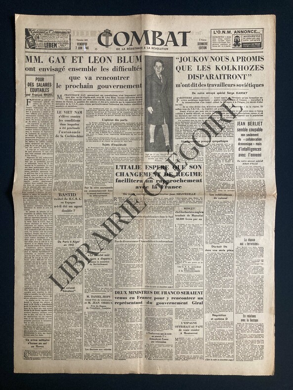 2 PAGES-43 CM X 60 CM-JEAN BERLIET SEMBLE COUPABLE NON SEULEMENT DE "COLLABORATION ECONOMIQUE" MAIS D'INTELLIGENCE AVEC L'ENNEMI-MOSLEY CHEF DES FASCISTES ANGLAIS TOUCHAIT DE MUSSOLINI 60.000 LIVRES PAR AN-M.DANIEL ROPS GRAND PRIX DE LITTERATURE ET M. JEAN ORIEUX PRIX DU ROMAN DE L'ACADEMIE FRANCAISE-DES TRAVAILLEURS RUSSES M'ONT DIT.