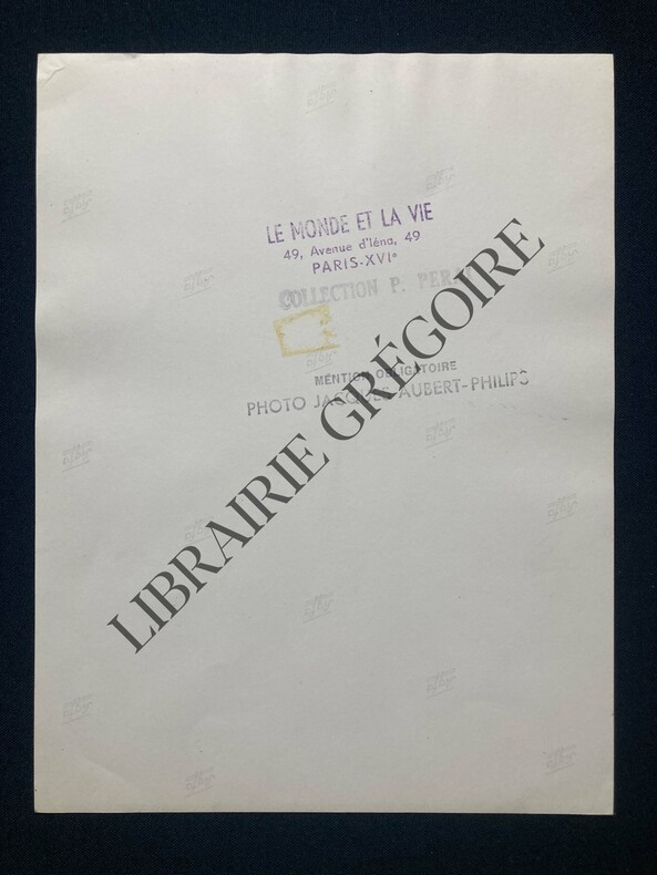 TIRAGE ARGENTIQUE NOIR ET BLANC-18 CM X 24 CM-AU DOS: CACHETS HUMIDES PHOTO JACQUES AUBERT-PHILIPS, LE MONDE ET LA VIE, COLLECTION PERAL (DOCUMENTALISTE)-(CP1)