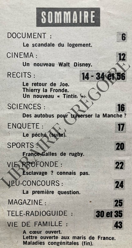 56 PAGES-24 CM X 31 CM-SCANDALE VINGT ANS APRES LA GUERRE! LES FRANCAIS S'EPUISENT DANS LA COURSE AU LOGEMENT, 5 PAGES-RUGBY, PAR JEAN BOBET: FRANCE-GALLES POUR L'HONNEUR, ROGER COUDERC: AVEC LUI ON ENTRE DANS LA MELEE, PHOTO-THIERRY LA FRONDE 13 LA ROUTE DE CALAIS, 2 PAGES-EN 4 DE COUVERTURE: TINTIN ET LES ORANGES BLEUES I UN COLIS BIEN MYSTERIEUX