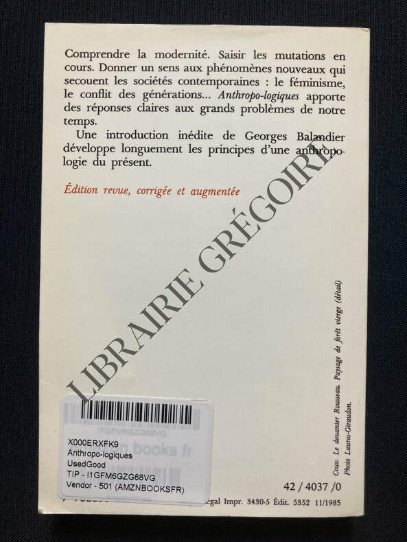 Collection le livre de poche biblio essais n°4037 - Augmenté d'un avant-propos inédit les anthropo-logiques dans la modernité - édition revue et corrigée. Classification Dewey : 306-Anthropologie