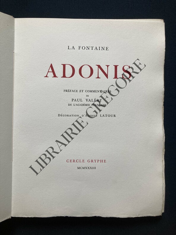 PREFACE ET COMMENTAIRES DE PAUL VALERY-DECORATION D'ALFRED LATOUR-104 PAGES-22,8 CM X 29,7 CM-TIRE SUR VELIN BLANC DE MONVAL A 115 EXEMPLAIRES-EXEMPLAIRE N°42 IMPRIME POUR LE COCTEUR ALBERT POLICARD-EN PARTIE NON COUPE-4 TRACES D'INSOLATION EN PREMIER PLAT-(DG525)